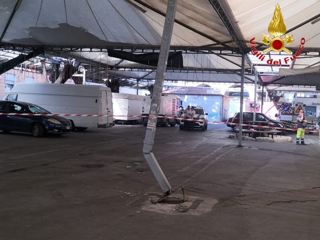 Alle ore 16:15 di Venerdì 18 agosto, i Vigili del fuoco di Civitavecchia sono intervenuti a Piazza Regina Margherita poichè secondo una prima ricostruzione una macchina operatrice, una spazzatrice di CSP che stava operando le pulizie dopo l’orario di vendita, ha urtato un pilastro portante della struttura sovrastante compromettendone la satbilità.
