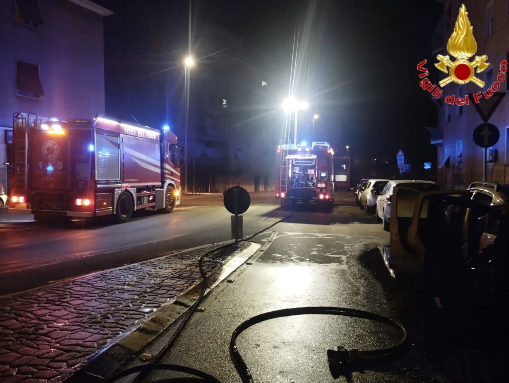 A bruciare, per cause in corso di accertamento, erano due auto di media cilindrata. I Vvf arrivati immediatamente sul posto, con l’equipaggio della 17A e autobotte AB17, hanno estinto le fiamme che divampavano dalle vetture, facendo si che non si propagassero alle altre auto parcheggiate nelle immediate vicinanze. Una volta finito l’opera di spegnimento, gli uomini della Bonifazi, hanno messo in sicurezza l’area circostante. Non si è registrato nessun ferito.