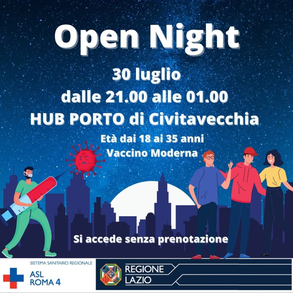 Si svolgerà a Civitavecchia il prossimo 30 luglio presso l’Hub del Porto (ingresso varco Nord) l’open night delle vaccinazioni dedicato ai giovani tra i 18 e i 35 anni.