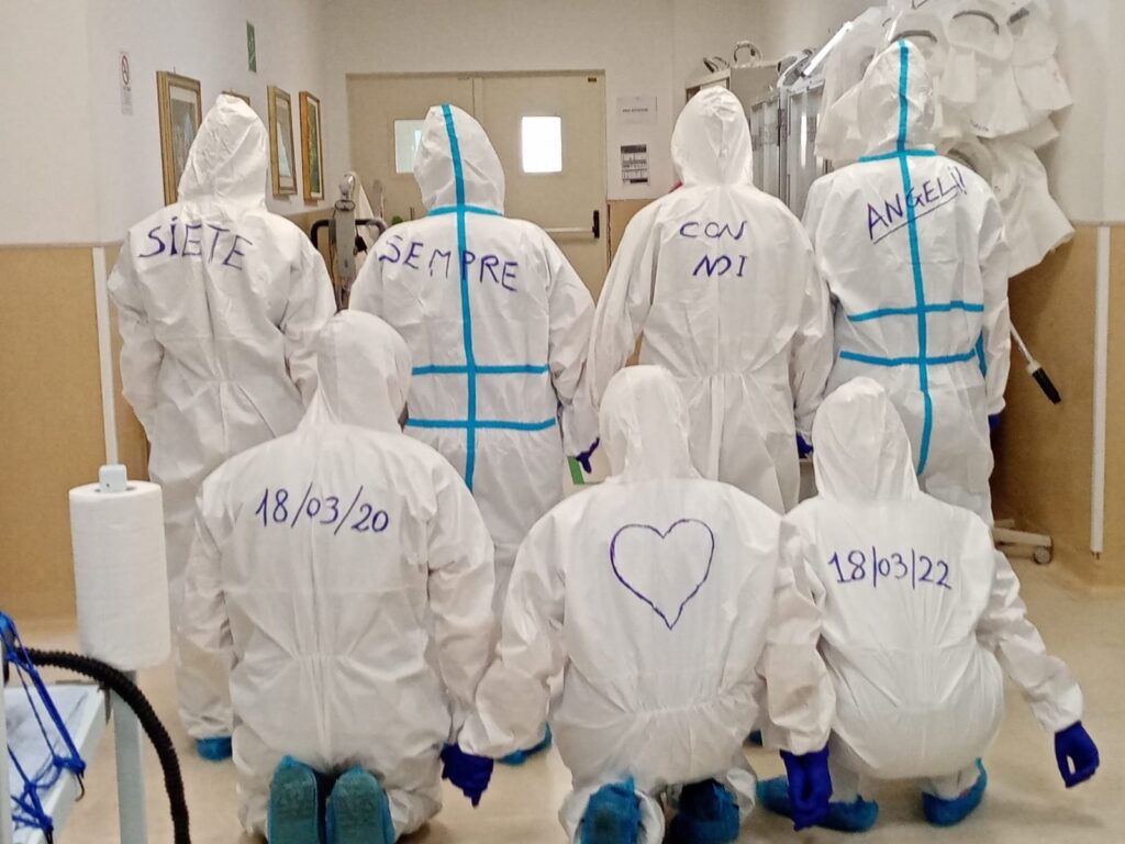 Quando il respiro si faceva sempre più corto e le nostre mani e i nostri volti dietro la visiera dovevano confortare e sostituirsi agli affetti più cari.