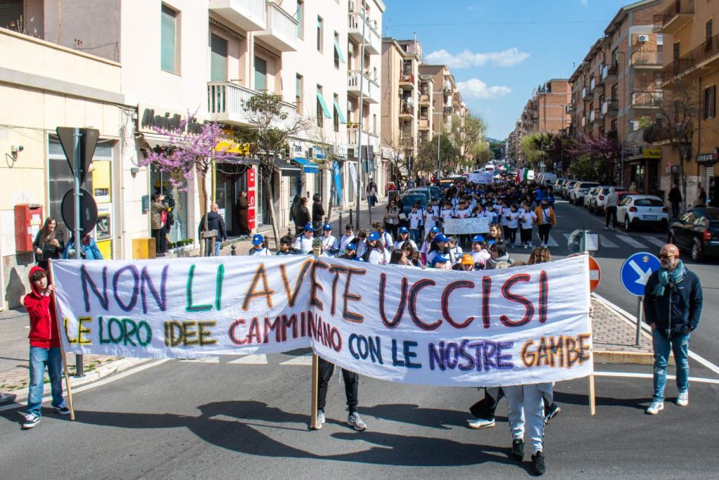 CIVITAVECCHIA – Un’onda giovane, consapevole e determinata ha attraversato la Marina di Civitavecchia. Oltre 300 studenti della scuola di via Don Milani, presidio di Libera contro le mafie, hanno dato vita a un intenso flash mob davanti alla statua dedicata a Giovanni Falcone e Paolo Borsellino, in vista della Giornata nazionale della memoria e dell’impegno in ricordo delle vittime innocenti delle mafie.