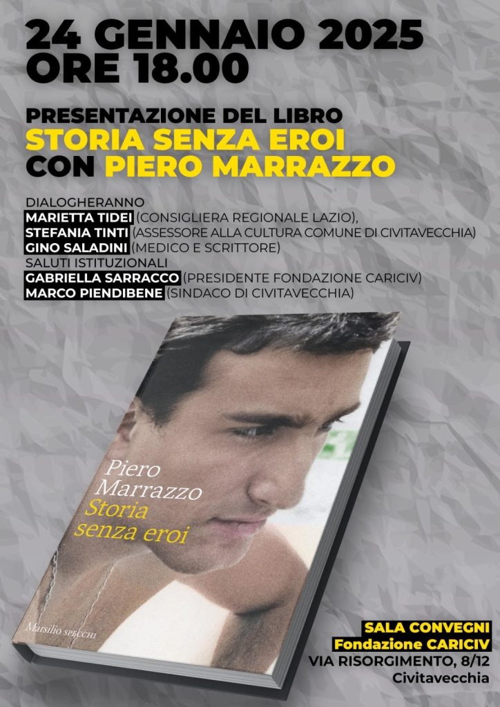 Alla presenza dell’autore, si terrà la presentazione del libro di Piero Marrazzo “Storia senza eroi”, pubblicato da Marsilio Editori. Da via Gradoli a Manhattan e ritorno: la caduta e il riscatto di un uomo che, attraverso questo libro, ha raccontato la sua storia personale e le vicende che lo coinvolsero, fino a indurlo a dare le dimissioni da Governatore del Lazio nel 2009.