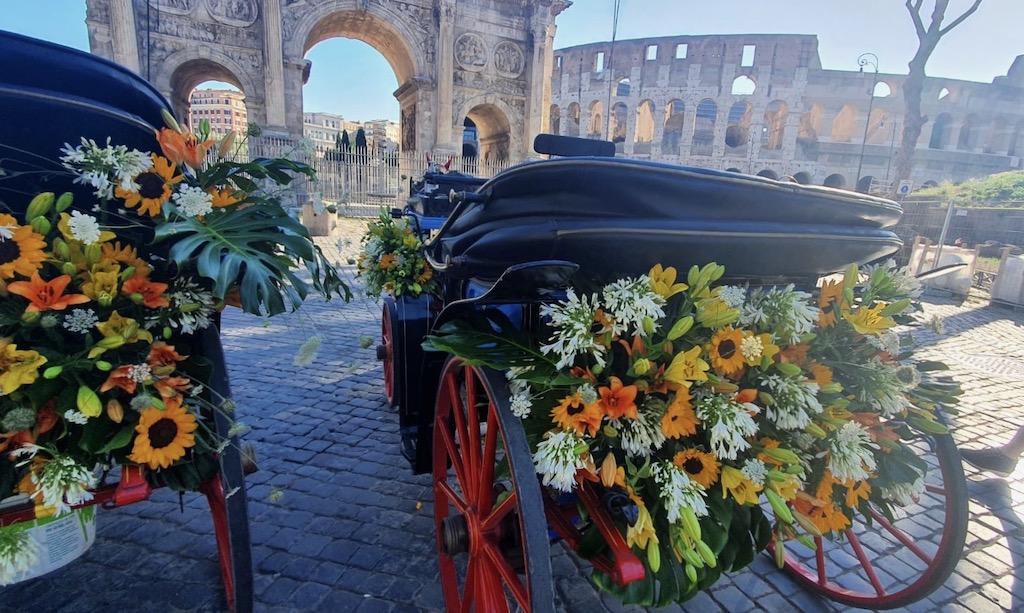 Coldiretti Lazio, al Colosseo botticelle fiorite a sostegno del Florovivaismo –