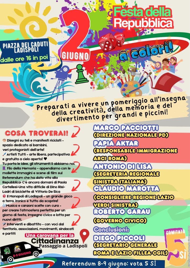 Comitato 5Sì Ladispoli-Cerveteri: “Coloriamo il 2 giugno” –