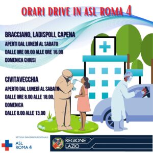 Si avvisa l’utenza che deve ricorrere ad eseguire il tampone che, a partire da lunedì 7 marzo, varieranno gli orari presso i drive-in della ASL Roma 4.