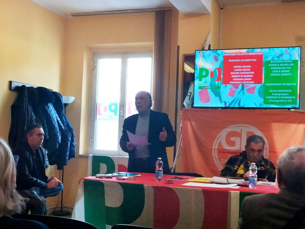 Crescenzo Paliotta che come ricordiamo per tre mandati ha indossato la fascia tricolore come Sindaco di Ladispoli ed oggi Consigliere Comunale, ha elencato una serie di punti programmatici: “Impegno costante per l’affermazione a livello locale della linea del PD come partito che si riconosce pienamente nei valori e nei principi della Costituzione Italiana, solidarietà, antifascismo, lotta all’emarginazione e alle diseguaglianze, difesa del lavoro, impegno per la Pace e la libertà di tutti i popoli. Un partito europeista e riformatore pienamente inserito nel Gruppo dei Socialisti Europei, aperto alle alleanze con le altre forze democratiche del Continente. Far diventare il Circolo di Ladispoli non solo luogo di confronto per i nostri militanti ma anche una sede aperta a tutte le istanze cittadine interessate al dialogo sui problemi di Ladispoli e alla creazione di uno schieramento unitario. Impegno per mettere al centro dell’azione politica i temi dello sviluppo compatibile con l’ambiente, dell’occupazione stabile, delle politiche giovanili, della cultura come elemento di crescita profonda e consapevole. Elaborazione di proposte per il rilancio del Turismo, facendo delle risorse del mare e del nostro patrimonio storico-ambientale una leva per creare lavoro e per tornare a consolidare un’immagine positiva di Ladispoli dopo anni negativi sotto questo profilo. Impegno in Consiglio Comunale per creare una intesa con le altre forze di minoranza contrastando le scelte sbagliate dell’attuale Amministrazione e creando le condizioni per alleanze in vista delle prossime elezioni comunali.”