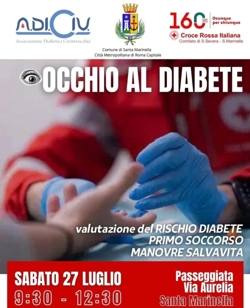 Durante l’evento sarà possibile effettuare analisi per valutare il rischio di diabete, si svolgerà sabato 27 luglio dalle ore 9:30 alle ore 12:30 a Santa Marinella, Passeggiata via Aurelia.