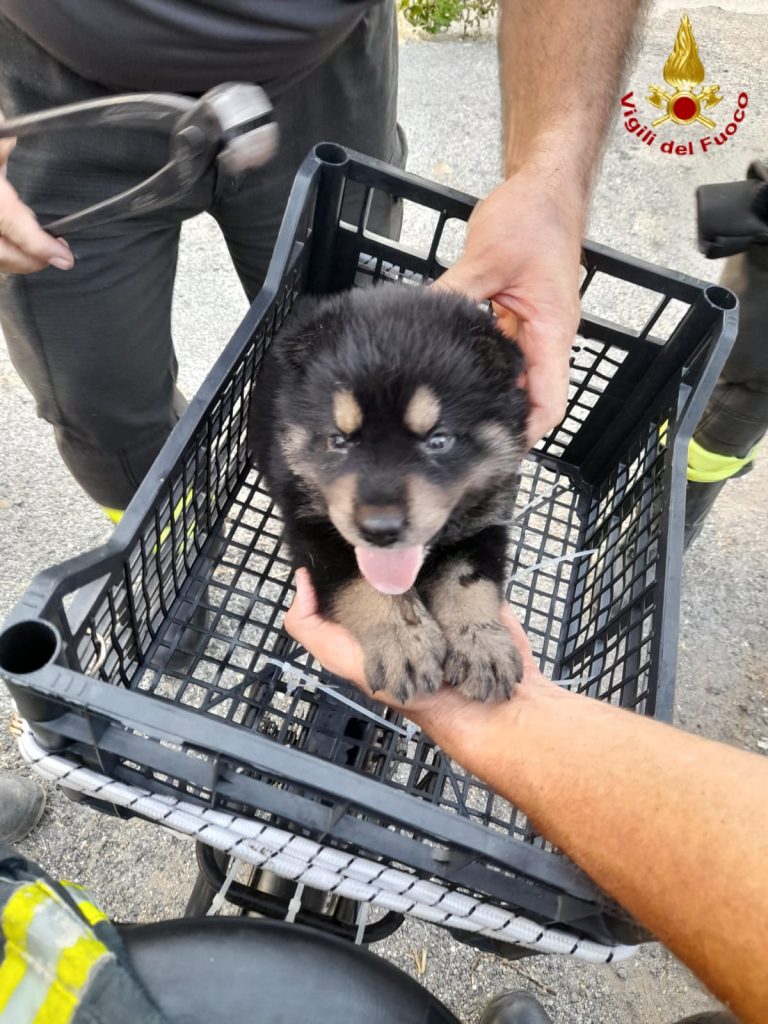 Gli uomini della 17A, allertati dai padroni, con l’aiuto di utensili hanno liberato il cucciolo che non ha riportato alcuna ferita.