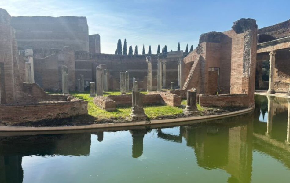 Nel pomeriggio, il gruppo si è spostato a Tivoli per la visita a Villa Adriana, straordinaria testimonianza dell’architettura e del lusso dell’epoca romana. Qui, ogni studente si era preparato su una specifica sezione della villa e ha esposto le proprie conoscenze ai docenti e ai compagni, approfondendo aspetti legati al Pecile, al Teatro Marittimo, alle Terme, alla Biblioteca, al Teatro, all’Hospitalia, al Canopo e al Serapeo. Questo metodo ha reso la visita interattiva e coinvolgente, trasformando gli studenti in veri e propri ciceroni per un giorno.