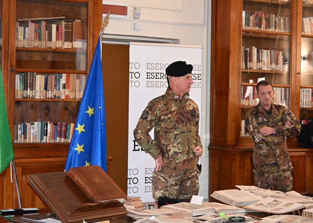Gli studenti sono stati accolti dal Generale di Corpo d’Armata Francesco Olla, Comandante del COMVIE, e hanno visitato la Biblioteca e il Museo Storico, dove il Direttore, Tenente Colonnello Fabrizio Santillo, ha condotto i ragazzi alla scoperta del patrimonio librario di oltre sessantaduemila volumi e decine di collezioni di riviste militari, sia italiane sia straniere e circa diecimila carte geografiche e topografiche. Dopo aver seguito un breve excursus storico della Biblioteca e della Scuola di Guerra dell’Esercito, gli studenti hanno potuto ammirare alcuni dei volumi più antichi custoditi, tra i quali testi seicenteschi e settecenteschi provenienti da donazioni risalenti alla Casa Savoia.
