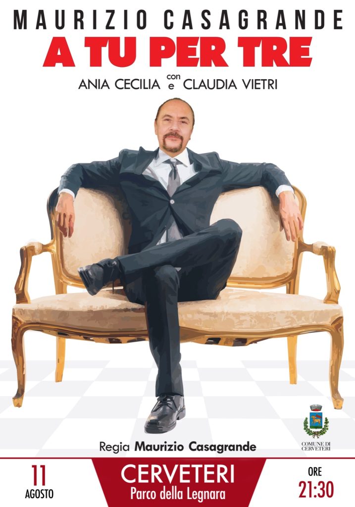 “Stasera, venerdì 11 agosto, alle ore 21:30 presso l’Arena della Legnara, va in scena il grande Maurizio Casagrande, con lo spettacolo “A tu per tre”, una commedia divertente e piena di momenti esilaranti assolutamente da non perdere.”