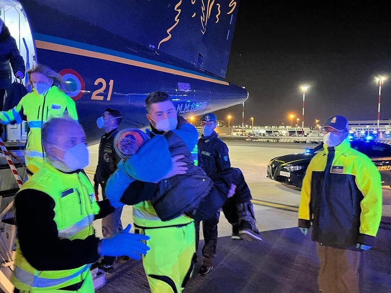 È atterrato ieri sera all’aeroporto di Fiumicino il secondo volo militare della Guardia di Finanza per portare i piccoli pazienti ucraini, dall’Ucraina a Roma, all’ospedale pediatrico Bambino Gesù, nell’ambito delle operazioni del sistema nazionale della protezione civile.