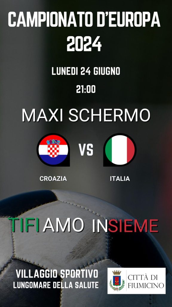A Fiumicino verrà installato un maxi schermo al Villaggio Sportivo in occasione della partita del Campionato d’Europa 2024 Croazia-Italia