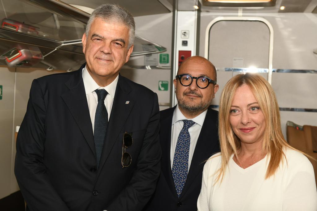 Giorgia Meloni è salita questa mattina a bordo del Frecciarossa Roma-Pompei per inauguare la nuova tratta.