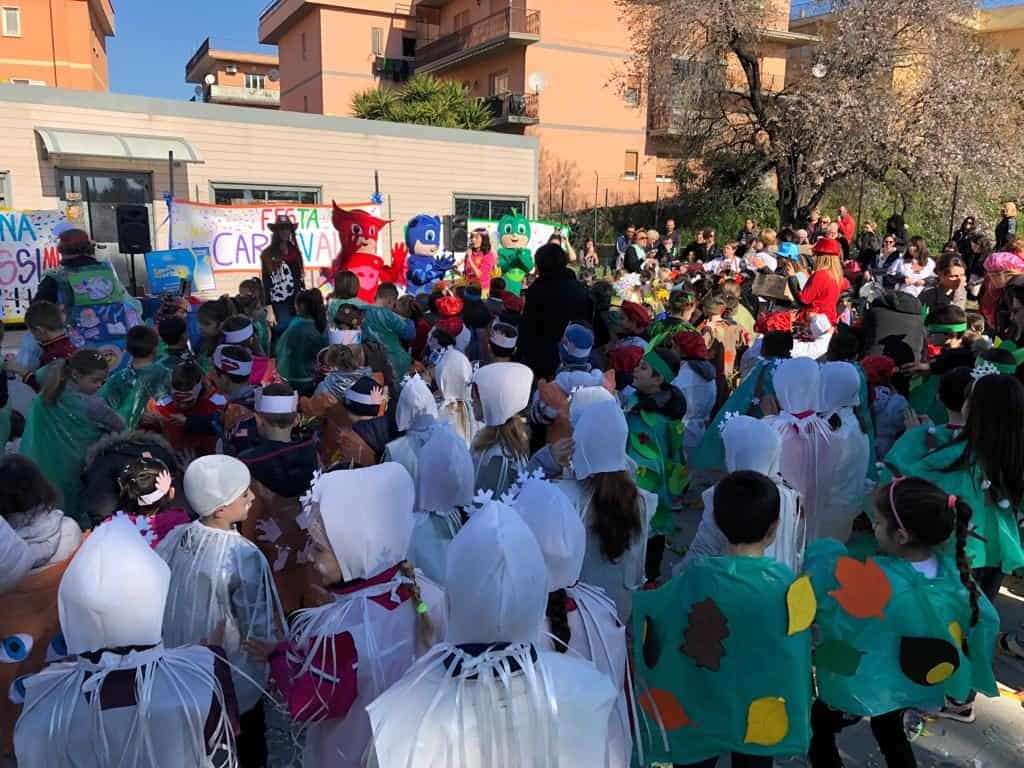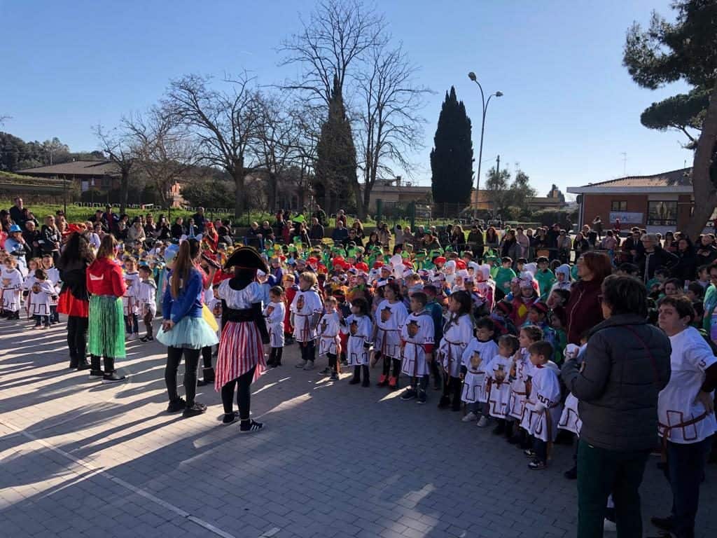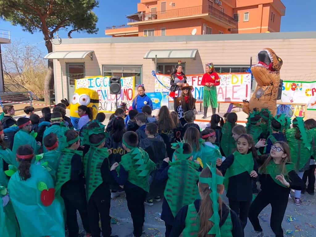 Il cortile della scuola era gremito di gente tutti venuti per vedere le mascherine che le insegnanti con gli alunni avevano preparato per l occasione.Le classi prime e le classi seconde che seguivano il progetto SCUOLAMBIENTE, hanno rappresentato gli alberi nelle 4 stagioni e la frutta chele contraddistingue.Le classi terze hanno invece rappresentato lo studio della preistoria, travestestendo gli alunni in dinosauri, invece le quarte hanno rappresentato le letture dei bambini, travestendoli nei personaggi reali e immaginati da loro preferiti. Infine le classi quinte hanno scelto maschere che riguardavano le Regioni italiane, gli Etruschi e altri personaggi della fantasia.