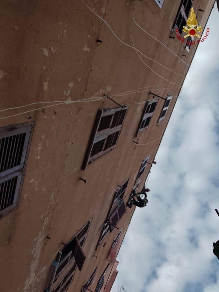 Per poter entrare nell’abitazione, gli operatori si sono calati lungo la parete esterna della palazzina, per raggiungere una delle finestre dell’appartamento.