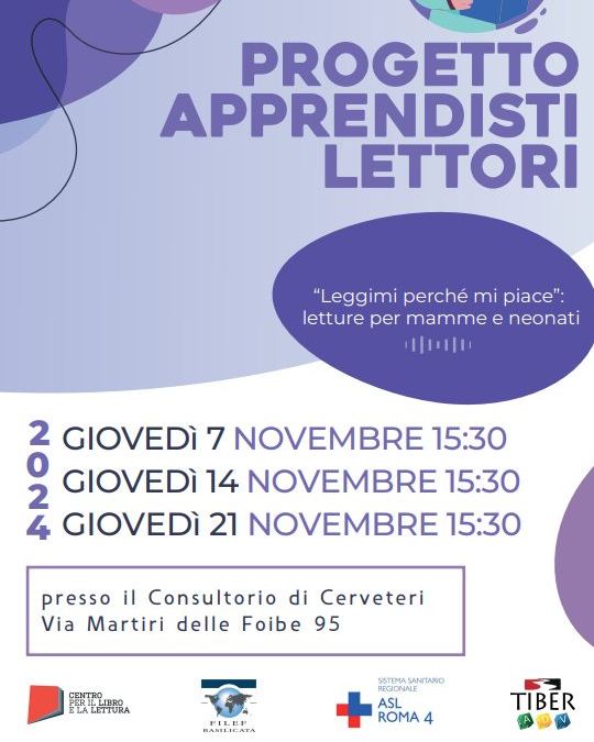 Il 7, 14, 21 novembre 2024 presso il consultorio di Cerveteri il Progetto Apprendisti Lettori –