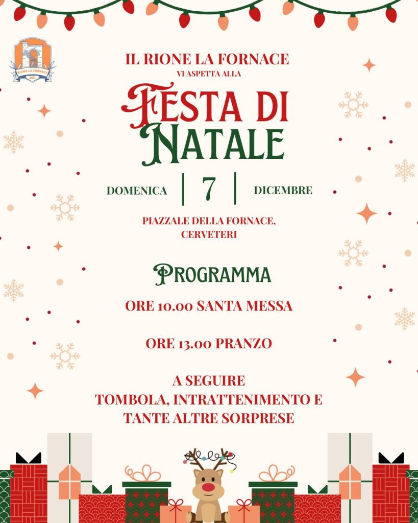 Si svolgerà domenica 7 dicembre l’evento natalizio del Rione Fornace, che a partire dalla mattinata, animerà il piazzale del quartiere (adiacente all’asilo Montessori). I festeggiamenti natalizi inizieranno alle ore 10:00 con la Santa Messa per poi proseguire con il pranzo e un pomeriggio di giochi. Il tutto si svolgerà al coperto e in ambiente riscaldato.