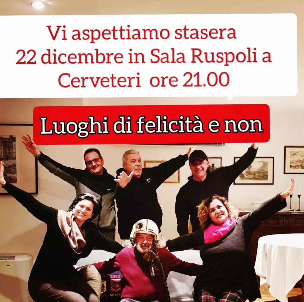 Alle ore 21 presso la Sala Ruspoli si terrà lo spettacolo “Luoghi di Felicità e non” del gruppo di teatro partecipato a cura dell’associazione Le Odissere.