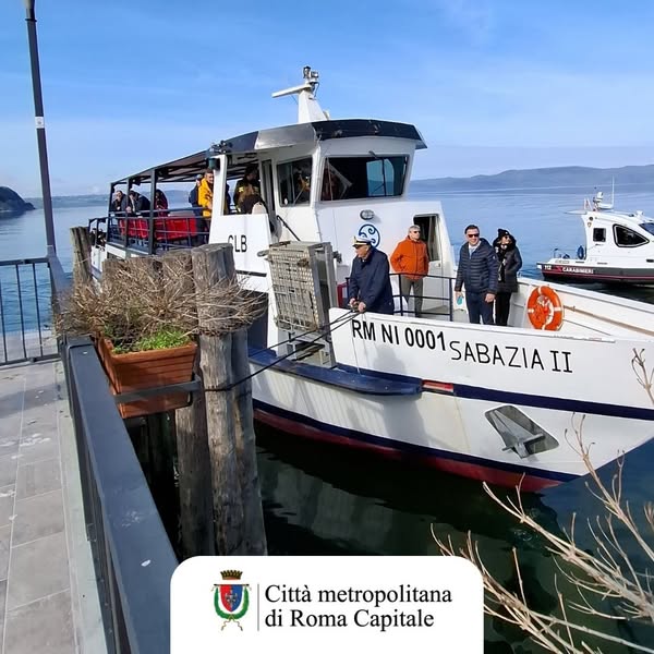 A bordo della motonave Sabazia II, che ha ripreso la navigazione turistica grazie a un’iniziativa della Città Metropolitana, sono giunti ai nuovi pontili diverse autorità, tra cui il consigliere delegato all’Ambiente, Rocco Ferraro, il presidente del Consorzio di Navigazione, Francesco Pizzorno, e i sindaci di Bracciano, Anguillara Sabazia e Trevignano Romano, insieme a rappresentanti istituzionali.