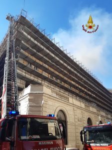 Incendio in via Flavia a Roma presso l’edificio in ristrutturazione del Ministero del Lavoro. Ad andare in fiamme il tetto e il sottotetto.