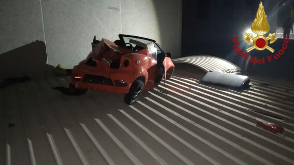 Le operazioni d’intervento effettuate dal personale anche se difficoltose, hanno permesso di portare in salvo un ragazzo che conduceva una microcar, che per cause imprecisate finiva all’interno di una scarpata terminando sul tetto di un capannone industriale sottostante.