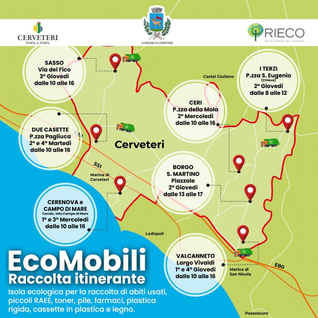 Il Comune di Cerveteri ha pubblicato il calendario e la mappa delle EcoMobili Itineranti, le isole ecologiche mobili che saranno inviate nelle frazioni della città.