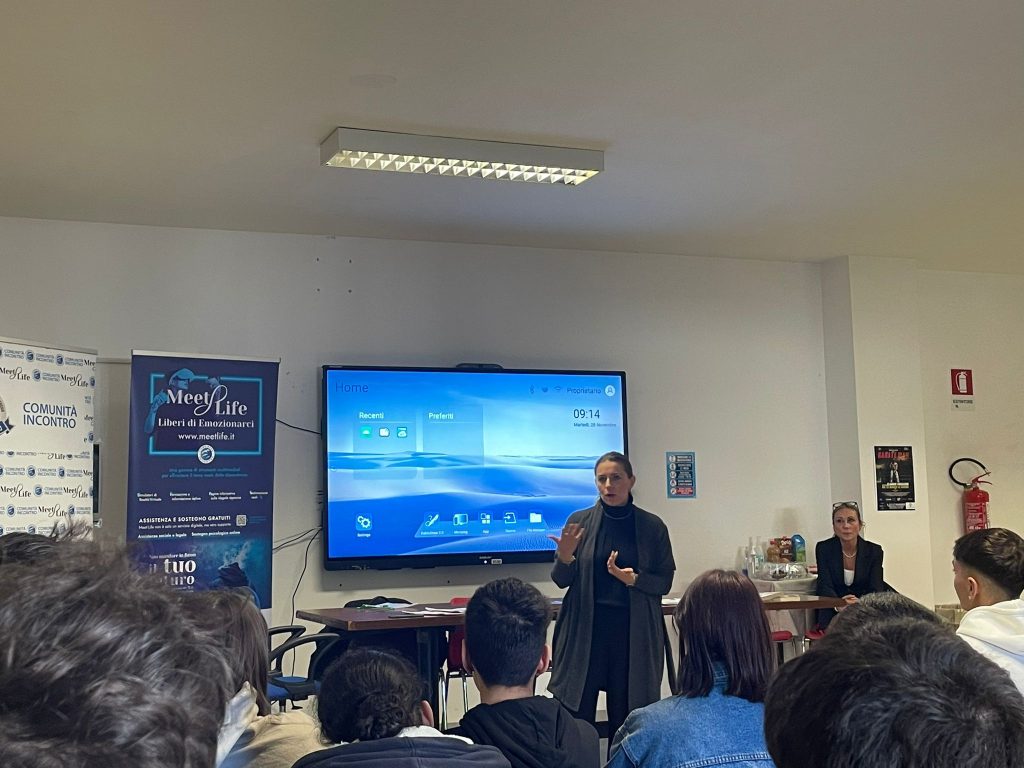La Dott.ssa Carosi ha quindi presentato agli studenti il Progetto “Meet Life”, finanziato dal Dipartimento per le Politiche antidroga della Presidenza del Consiglio dei Ministri e finalizzato – è stato spiegato – a “formare ed informare, tramite modalità esperienziali e l’utilizzo delle nuove tecnologie, in merito al tema delle dipendenze”, sensibilizzando adolescenti e ragazzi sugli strumenti della prevenzione: un metodo efficace “basato sull’educazione attraverso il divertimento”, con cui ci si propone di aumentare nei giovani la motivazione a prendere decisioni sane.