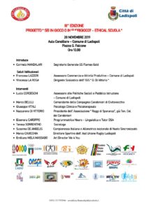 Il 28 novembre è in programma il convegno dal titolo “Sei in gioco o in fuorigioco? Ethical scuola” presso l’ Aula Consiliare di piazza Falcone con inizio alle ore 10.00