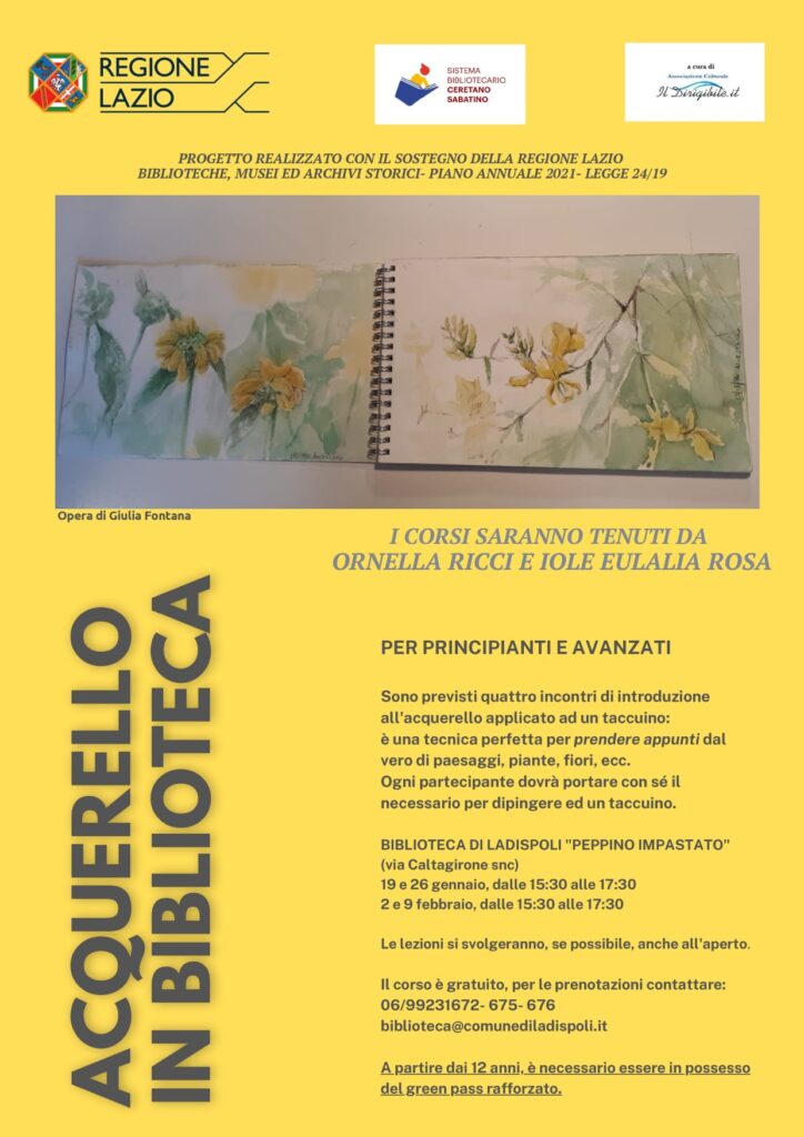 Presso la Biblioteca comunale di Ladispoli si terrà un corso, diviso in quattro incontri, dedicati all’insegnamento della tecnica della pittura ad acquerello, rivolto a tutti.