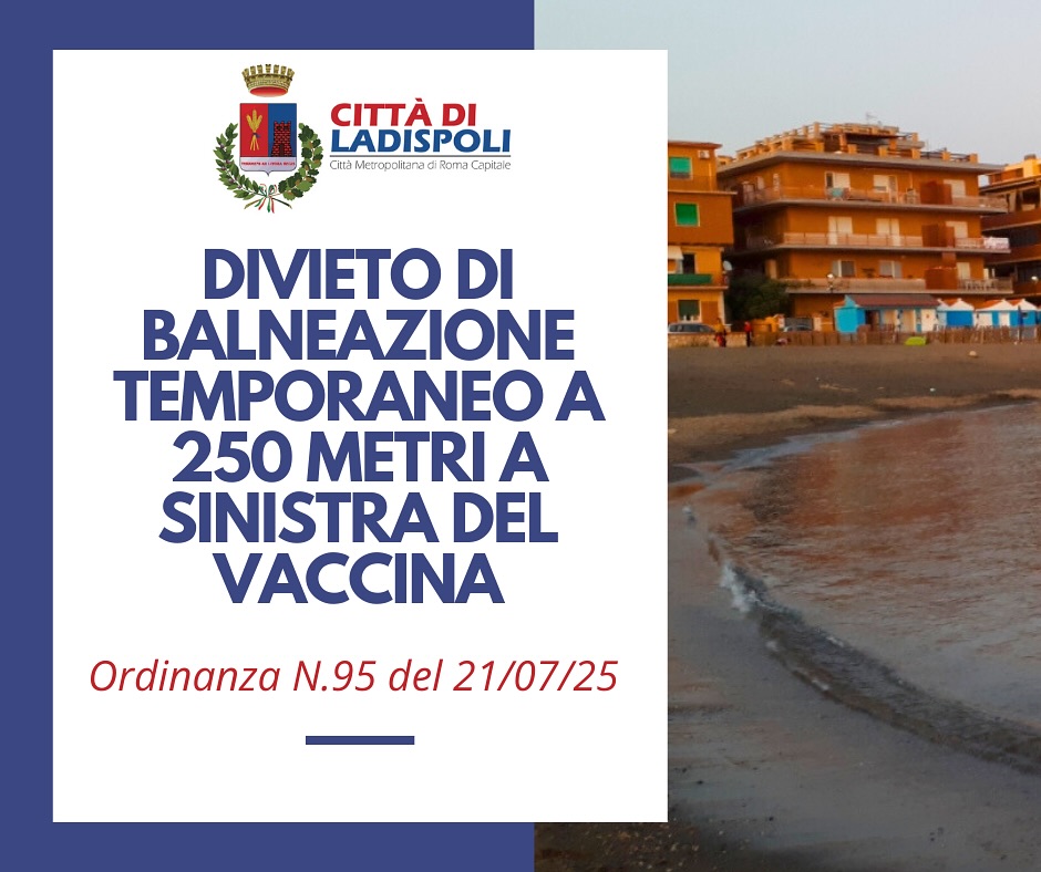 L’Amministrazione comunale informa i cittadini che, a seguito di recenti controlli sulla qualità delle acque lungo la costa, è stato emesso un divieto di balneazione temporaneo in una zona specifica della spiaggia. Questo provvedimento riguarda un tratto di circa 250 metri a sinistra della foce del Fosso Vaccina.