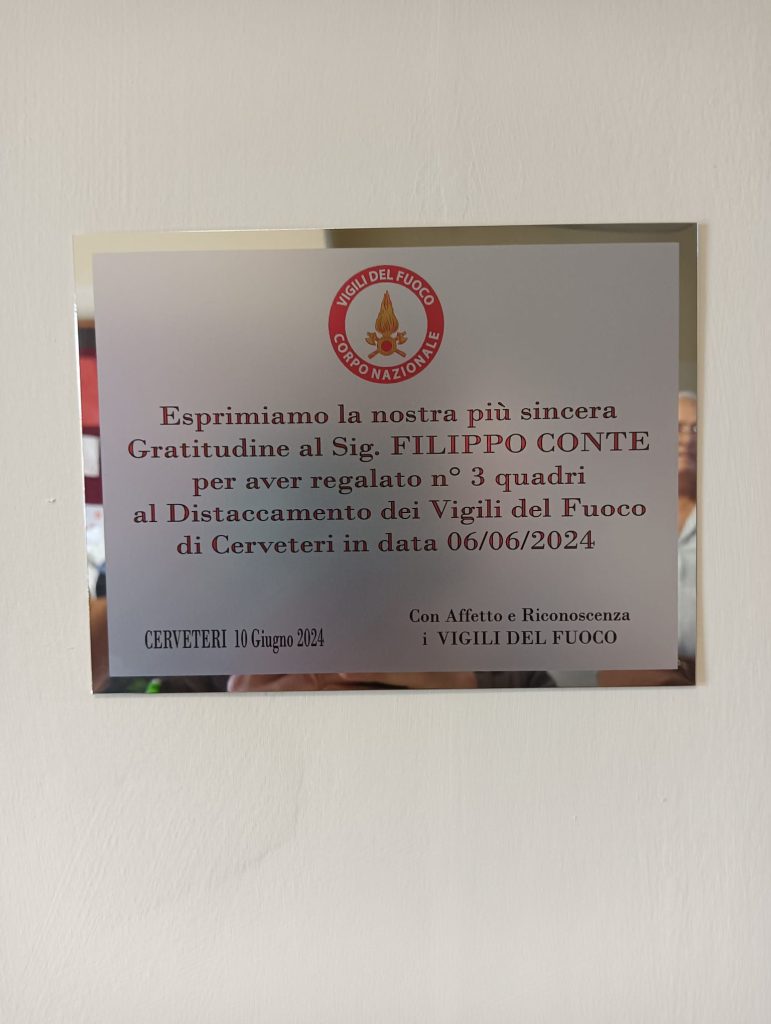 Un atto di generosità da parte di Filippo Conte, noto artista locale di Ladispoli e delegato comunale alle Mostre e alle Rassegne d’Arte. Perché è di arte che si parla e soprattutto della sua donazione di ben tre quadri alla caserma dei vigili del fuoco di Cerveteri-Ladispoli.
