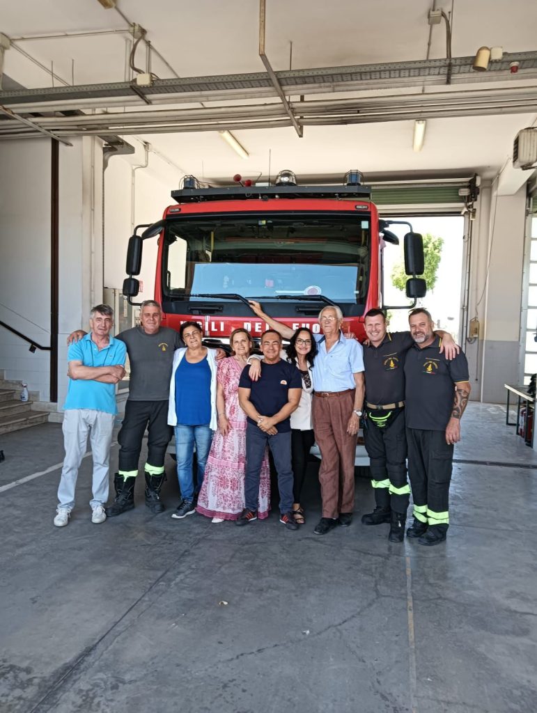 Dopo le celebrazioni e le emozioni nella sala, foto di rito non solo con i quadri ma anche di fronte ad un automezzo dei pompieri.