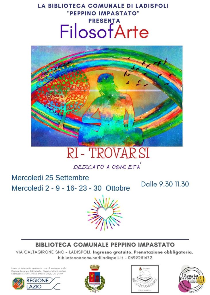 Proseguono Biblioteca gli incontri di Filosofarte: con ‘Ri-Trovarsi… Storie in essere’, un percorso esperienziale dedicato alla pratica della Filosofia come Arte di essere Dalla Conoscenza di Sé alla Pratica di Vita.