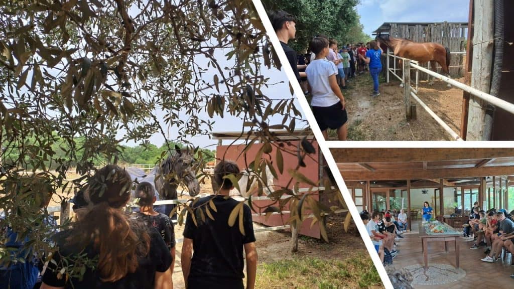 In occasione della  giornata mondiale dell’ambiente, le classi 2D e 2E dell’I.C. Ilaria Alpi di Ladispoli hanno trascorso una mattinata all’aperto presso la Polisportiva La Rosa bianca di Cerveteri sempre nell’ambito del progetto “Io mangio sano ” di Scuolambiente. Accompagnati dagli insegnanti e dalle volontarie Leda Bressanello e Tiziana Rossi hanno incontrato Laura, la responsabile della struttura, che li ha guidati, con l’ausilio di ortaggi stagionali e prodotti del territorio, ad approfondire i temi fondamentali inerenti una sana ed equilibrata alimentazione. I ragazzi hanno interagito con Laura parlando delle loro esperienze di alimentazione e di cucina, dimostrando per lo più di avere acquisito i principi di una sana e corretta alimentazione. La visita è poi continuata con una passeggiata all’interno del maneggio dove i ragazzi hanno incontrato dei bellissimi cavalli ed è stato loro spiegato come relazionarsi  con gli animali e come sia importante un approccio anche psicologico con essi per instaurare con loro un rapporto di reciproca fiducia e rispetto. Un fatto che ha colpito molto i ragazzi è che alcuni erano stati “salvati” da condizioni di vita precarie. L’attività di oggi ha consentito ai ragazzi di trascorrere delle ore in una realtà particolare in cui hanno potuto apprezzare un esempio di interazione sostenibile tra l’uomo e l’ambiente. Si ringraziano ancora gli insegnanti che hanno aderito al progetto, Laura che ha ospitato l’incontro  e le volontarie di Scuolambiente.