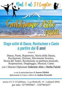 Dopo i successi raggiunti dal Centro Sportivo Il Gabbiano di Ladispoli, nel corso del mese di luglio saranno organizzati presso la scuola stage estivi per tutti i bambini dai 6 anni d’età che desiderano imparare le tecniche artistiche della Danza, del Canto e della Recitazione.
