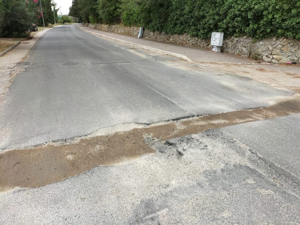 Non solo manca il ripristino di asfalto ma è ormai inesistente anche il materiale del ripristino provvisorio.