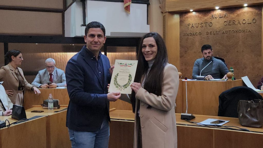 Durante il consiglio comunale, il sindaco Alessandro Grando ha premiato Annalisa Brozzi, la pugile che ha conquistato il titolo di campionessa italiana nei pesi gallo, lo scorso dicembre al palasport di Trieste.