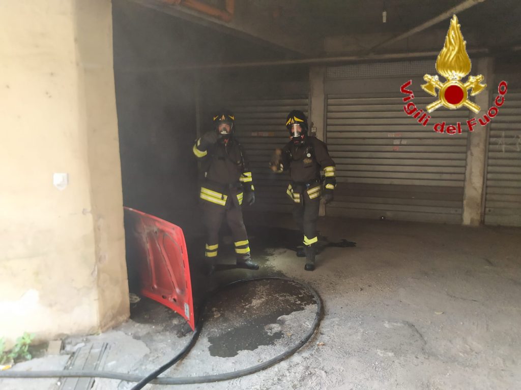 Grazie alla pronta risposta dei Vigili del Fuoco, le fiamme non si sono diffuse agli altri garage dell’edificio