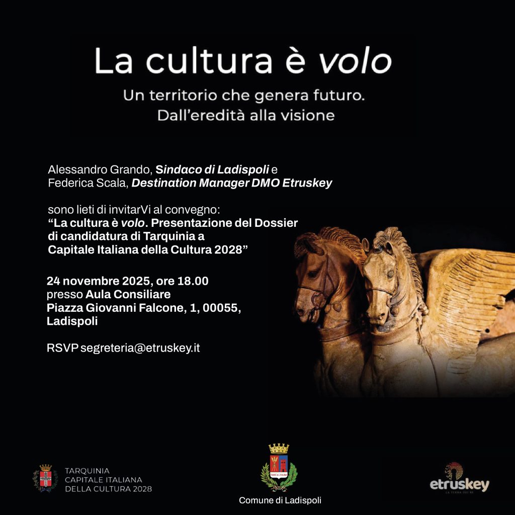 Si terrà il Convegno di presentazione del Dossier di candidatura con cui Ladispoli, insieme ai partner istituzionali del comprensorio, partecipa al prestigioso titolo di Capitale Italiana della Cultura 2028, in un progetto corale che vede Tarquinia come città capofila.