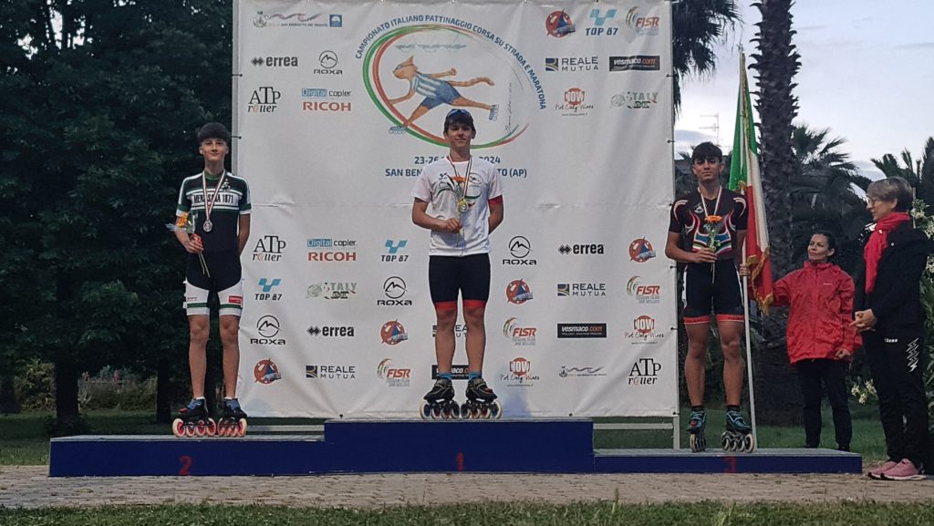 Gli atleti della DEBBY ROLLER TEAM tornano dai Campionati Italiani su Strada della F.I.S.R. (Federazione Italiana Sport Rotellistici) con 5 preziose medaglie di cui 2 Ori. La prima fase svolta a Paderno D’Adda (LC) dal 17 al 19 Maggio al centro sportivo “Enzo Bearzot” nel circuito stradale di 290 mt a giro, per le categorie Ragazzi 12 (12 anni) e Ragazzi (13-14 anni) e la seconda fase a San Benedetto del Tronto dal 23 al 26 Maggio nel circuito stradale “Teresa e Pietro Merlini” di 400 mt a giro, per le categorie Allievi (15-16 anni), Juniores (17-18 anni) e Seniores (dai 19 in su).