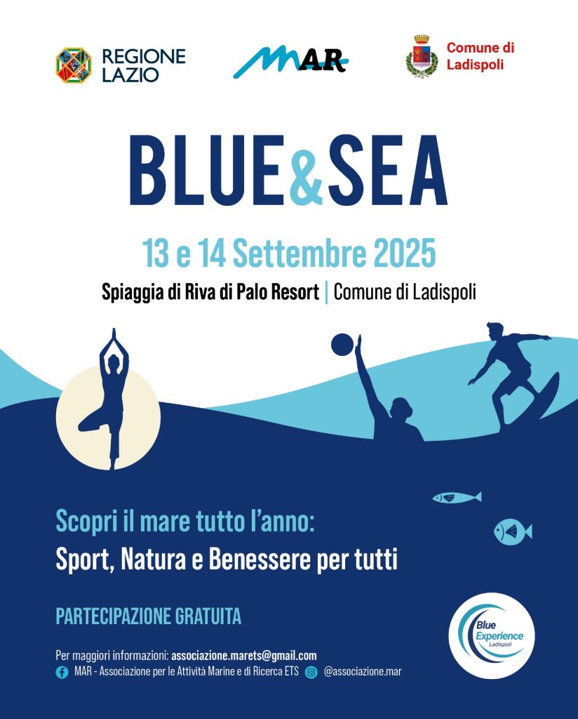 Con il progetto “Blue Experience Ladispoli”, la città ha avviato, da diversi mesi, un percorso innovativo di valorizzazione del mare come risorsa strategica per l’ambiente, il turismo e la comunità. Dopo iniziative di promozione turistica dedicate al litorale, laboratori di cultura del mare e appuntamenti di promozione enogastronomica legati al pescato locale e alla biodiversità, il percorso si arricchisce ora di una nuova tappa: “Blue & Sea”, in programma il 13 e 14 settembre 2025 sulla spiaggia e nelle aree verdi del Riva di Palo Resort e di Marina di Palo.