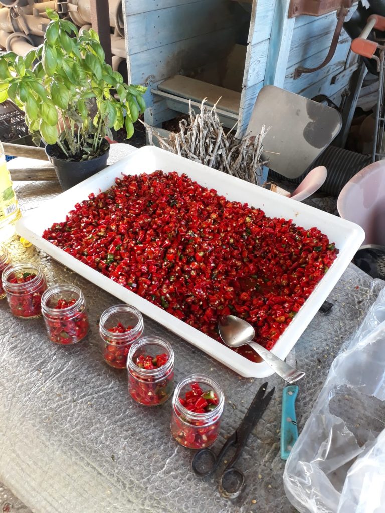 Ormai è divenuto un vero e proprio lavoro, pianto 500-600 piante all’anno. Scelgo i semi e faccio 4 quintali e mezzo di olio di peperoncino. Compio delle scelte di piantagione, per mischiare peperoncini piccanti con quelli meno. Mettendoli insieme si amalgamano producendo di conseguenza un bruciore più attenuato, adeguato ai gusti del palato.