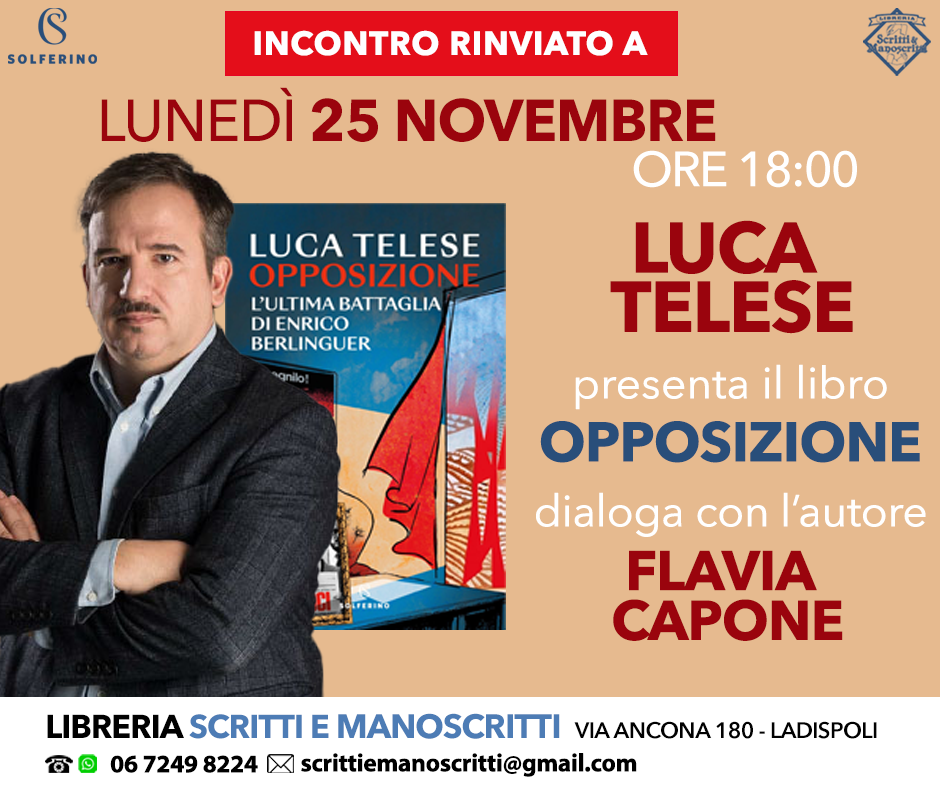 Lunedì 25 novembre ore18:00 Luca Telese presenta il suo libro “Opposizione. L’ultima battaglia di Enrico Berlinguer” edito da Solferino.