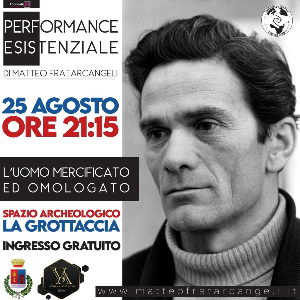 In scena uno spettacolo di Matteo Fratarcangeli dedicato alla figura di Pierpaolo Pasolini, dal titolo “L’uomo mercificato ed omologato”.
