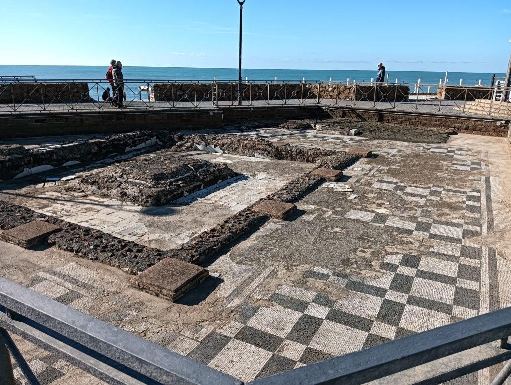 Sul lungomare Marina di Palo si trova invece la parte più interessante, ovvero un ambiente mosaicato individuato come una “coenatio” (camera da pranzo) estiva della villa.