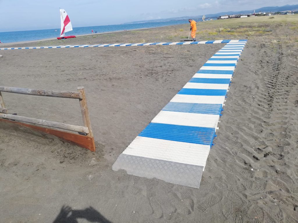 Arenile di Campo di Mare accessibile a tutti. La Multiservizi Caerite ha infatti concluso le operazioni di posizionamento delle passerelle sulle spiagge libere, che consentiranno a tutti di fruire delle nostre spiagge, persone con difficoltà motorie potranno raggiungere in autonomia il bagnasciuga e trascorrere una giornata al mare. Si tratta di sei passerelle, posizionate nelle spiagge libere, con uno spessore di 8 centimetri, un metro di larghezza e cinquanta metri di lunghezza.