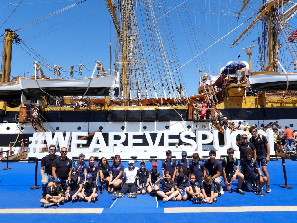 Il Presidente nazionale, l’ammiraglio Donato Marzano, dal 2020 alla guida della Lega Navale Italiana, si è recato questa mattina a bordo della nave scuola della Marina Militare “Amerigo Vespucci” in sosta nel porto di Civitavecchia nell’ambito del Tour Mediterraneo 2025 e ha incontrato, insieme al Comandante, il capitano di vascello Giuseppe Lai, un gruppo di giovani soci della LNI e i loro accompagnatori. Si tratta di ragazze e ragazzi che, con i giovani dell’Associazione Nazionale Marinai d’Italia (ANMI) e della Sail Training Association Italia (STA-I), hanno avuto l’opportunità di vivere un’esperienza di formazione a bordo del vascello della Marina Militare.