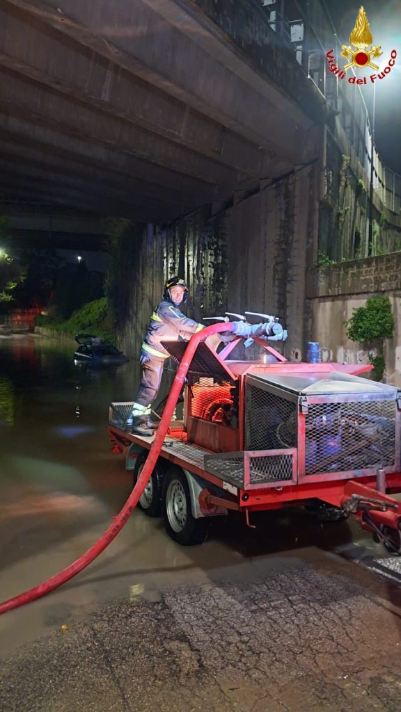 Interventi continui per allagamenti tra sottopassi e abitazioni: impiegate idrovore e motopompe