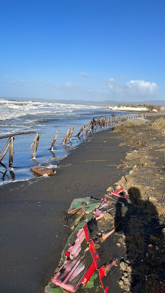 Mareggiata a Torre Flavia, divelte le staccionate e i cartelli –